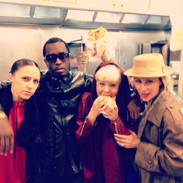 Det finns inte ord för att beskriva hur mycket jag älskar den här bilden (från Diddys twitter). Robyn och Diddy äter nattamat med två hangarounds.